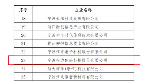 近日,浙江省經濟和信息化廳發布《浙江省經濟和信息化廳關于公布 2019 年浙江省電子信息產業百家重點企業名單的通知》,公布了2019 年(第 19 屆)浙江省電子信息制造業業務收入前 30 家企業、電子信息出口 20 家重點企業、軟件業務收入前 30家企業、電子信息 50 家成長性特色企業等電子信息產業百家重點企業名單,寧波市20家企業入圍,柯力傳感榜上有名。