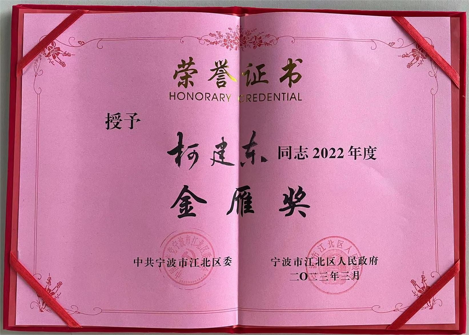 柯力傳感董事長(zhǎng)兼總裁柯建東先生榮獲2022年度金雁獎(jiǎng)