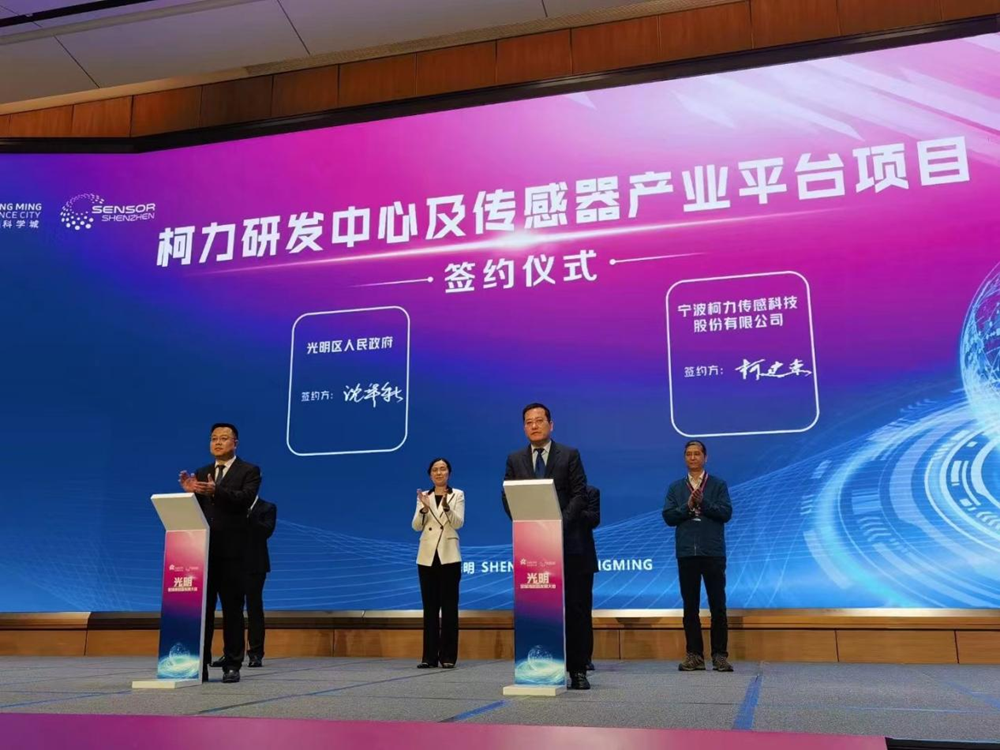 3月28日,光明·全球傳感器發展大會在深圳隆重開幕。會上,柯力集團與深圳光明區就柯力研發中心及傳感器產業平臺項目簽訂戰略合作協議。深圳市光明區委常委、副區長沈華新,柯力集團董事長兼總裁柯建東代表雙方簽約。